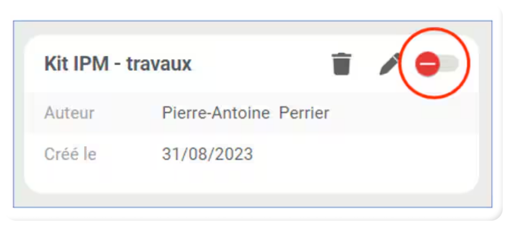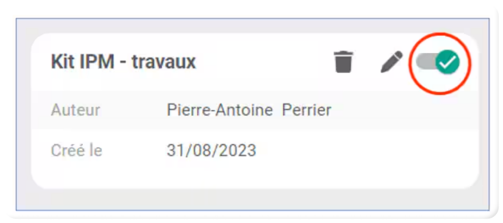 - Pour activer un kit de réponse, il suffit de cliquer sur le bouton à bascule, en haut à droite de la tuile du kit concerné :