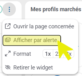 - Si vous préférez afficher vos alertes reçues par catégories d’alertes, cliquez sur les 3 petits points et cliquez sur « Afficher par alerte » :