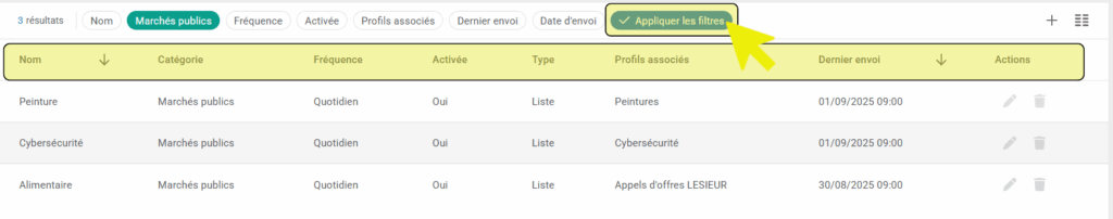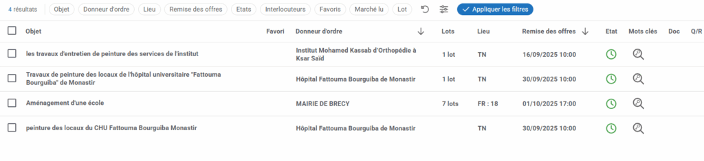 - 🎯 L’objectif de cette fonctionnalité étant de gagner du temps et de rester informé.e en temps réel des appels d’offres et des opportunités d’affaires, correspondant à votre activité.