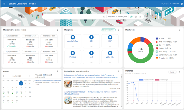 - La page d’accueil est composée de widgets, qui reprennent les informations les plus importantes et pertinentes, dans votre usage au quotidien de la plateforme.