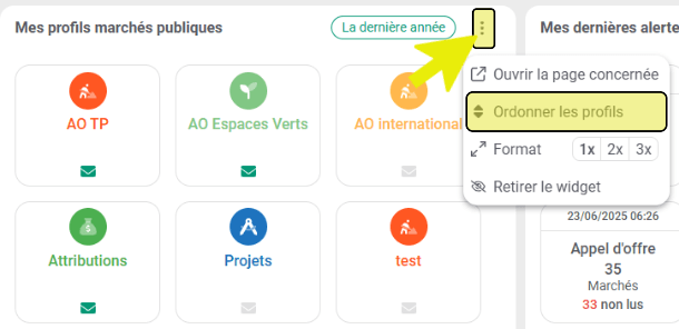 Vous pouvez également ordonnancer vos profils, depuis le widget « profils » de la page d’accueil :