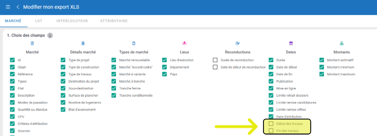 Les données « début de travaux » et « fin de travaux » sont maintenant disponible dans l’export XLS :