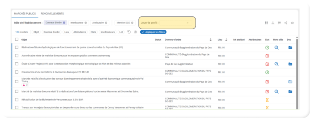 Dans le panneau de gauche, les lots remontés par votre profil apparaîtront immédiatement.
