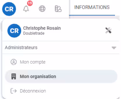 - Vous pouvez également accéder à la configuration de la synthèse en cliquant sur « Mon compte » > « Mon organisation » :