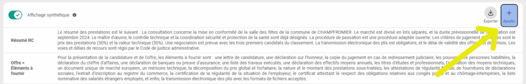 Pour générer la synthèse DCE et obtenir des éléments clés de votre marché, vous avez deux possibilités :