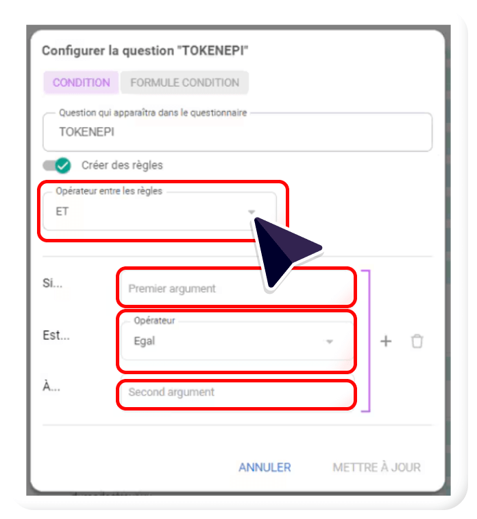Configurer une question « Formule – conditions »