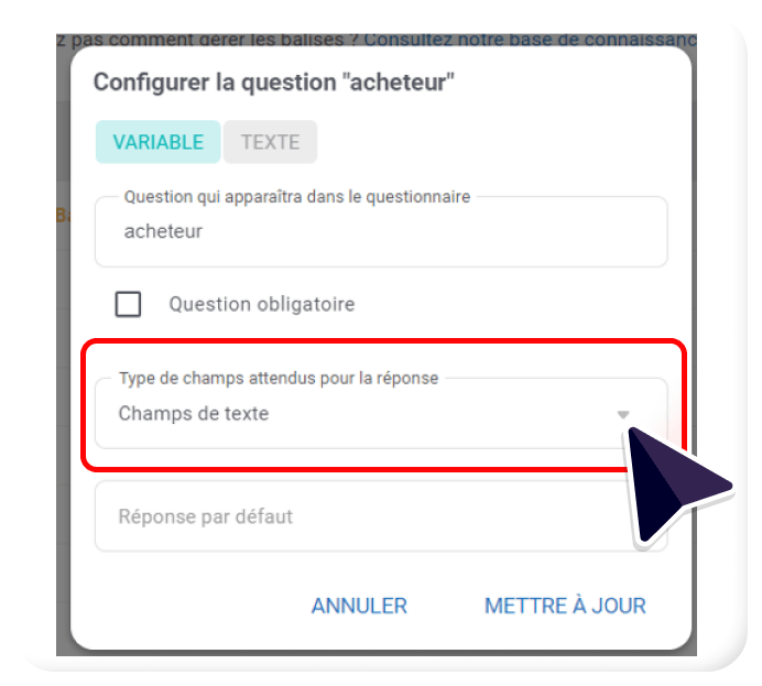- Types de champs attendus pour la réponse : plusieurs options sont possibles :