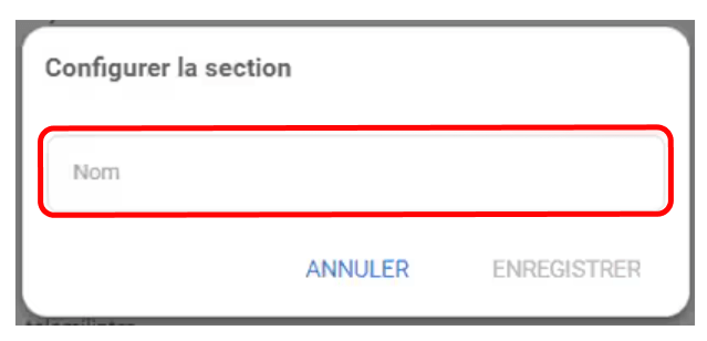En cliquant sur , vous pourrez créer une nouvelle section et taper son intitulé :