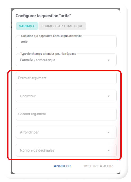 Configurer une question « Formule – arithmétique »