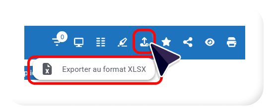 •  Et cliquer sur l’icône « Exporter au format XLSX », en haut à droite, dans la barre d’outils :