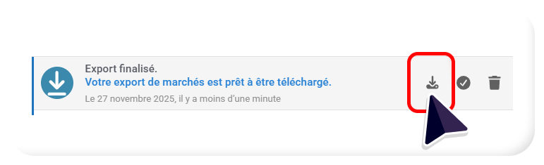 • Depuis vos « Notifications », vous êtes ensuite en mesure de télécharger votre fichier XLSX :