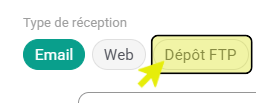 - Dans la partie « Type de réception », choisissez ensuite le bouton « Dépôt FTP » :