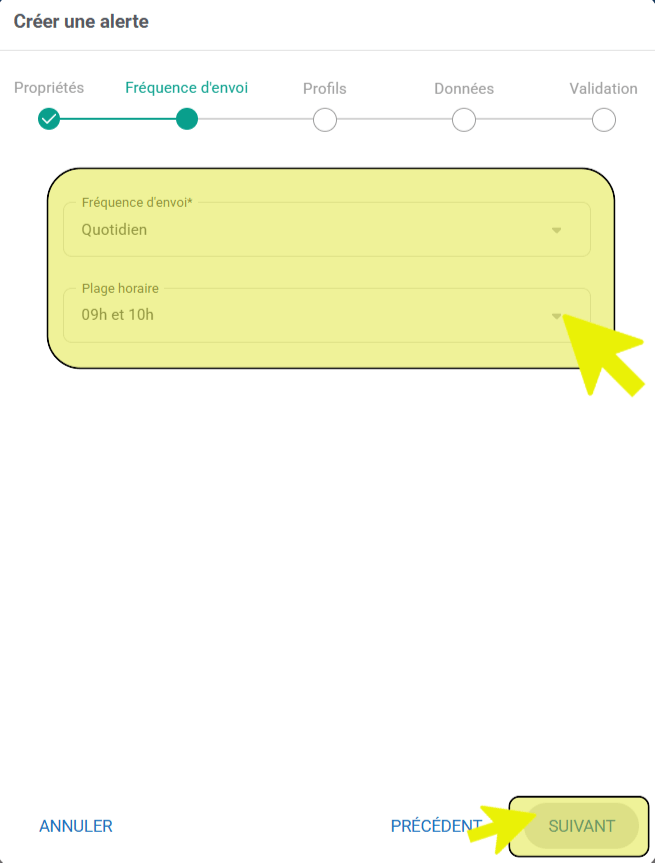 - En déterminant la fréquence d’envoi de votre alerte.