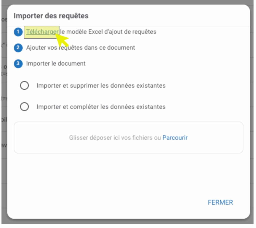 . - Une pop-up « Importer des requêtes » va ainsi s’afficher à l’écran :