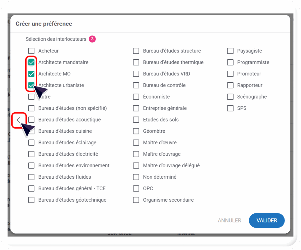 - Lorsque vous jouez une préférence, celle-ci sera automatiquement sauvegardée, pour l’ensemble de vos résultats de recherche qui suivront :
