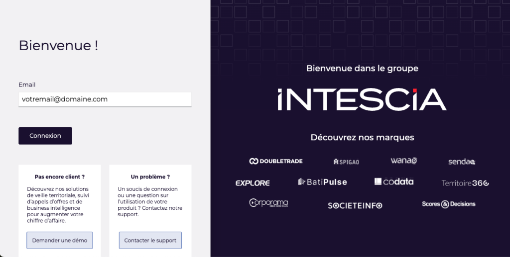 1️⃣ Une fois sur la page d’authentification, veuillez renseigner dans un premier temps votre e-mail correspondant à votre identifiant Insight