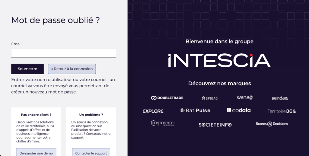 4️⃣ Vous devez ensuite renseigner votre e-mail correspondant à votre identifiant Insight et cliquez sur le bouton « soumettre », afin que le système puisse vous renvoyer un e-mail de création d’un nouveau mot de passe.