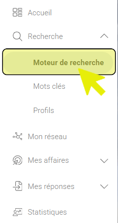 - Pour accéder au moteur de recherche, veuillez cliquer sur les onglets « Recherche » et « Moteur de recherche », dans le menu principal d’Insight :