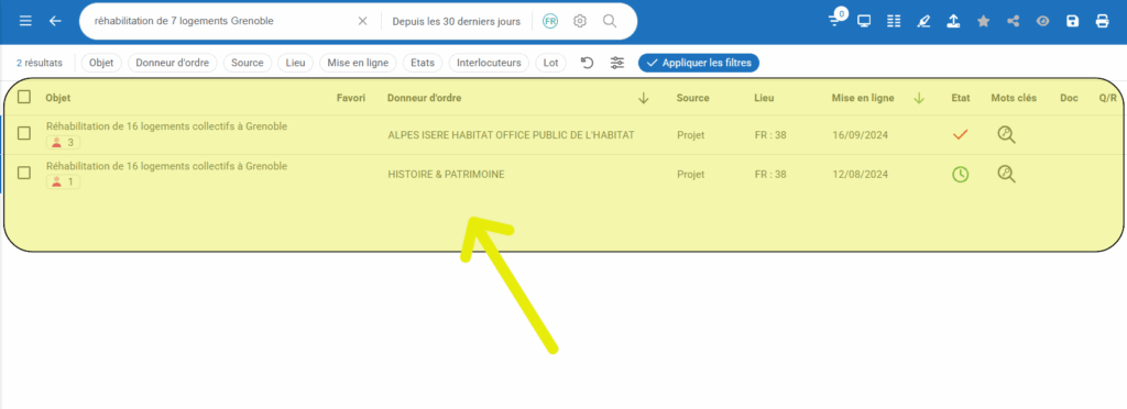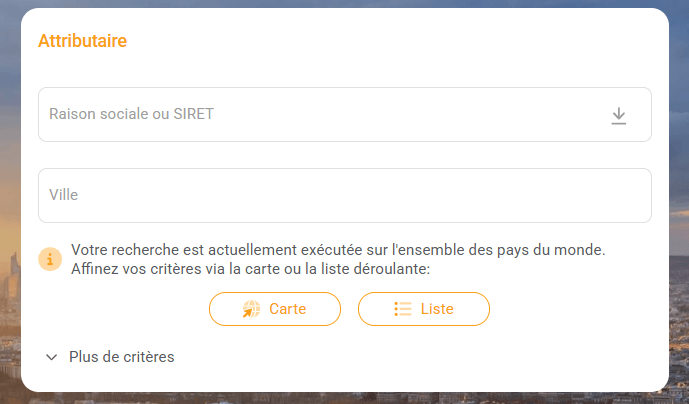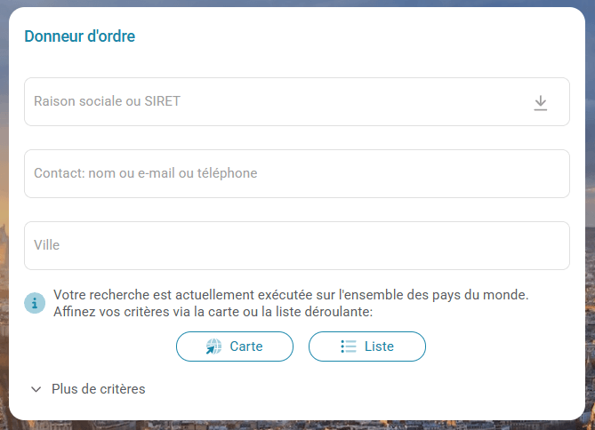 - Vous pouvez affinez votre recherche, sur les donneurs d’ordre, à l’aides des critères suivants :