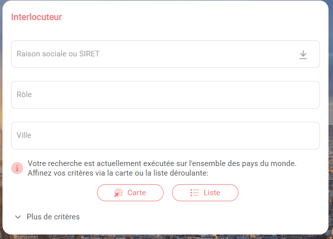 - Vous pouvez affinez votre recherche, sur les interlocuteurs, à l’aides des critères suivants :