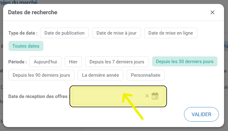 - Entrez la date de remise des offres du marché que vous recherchez.