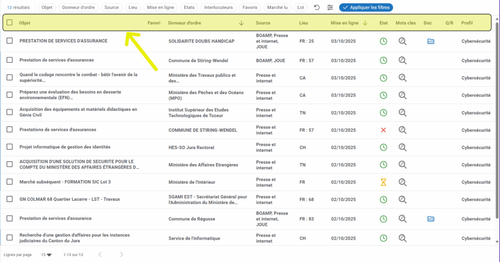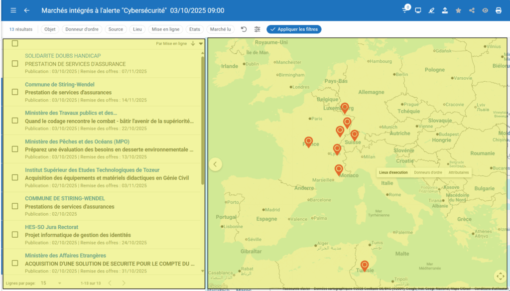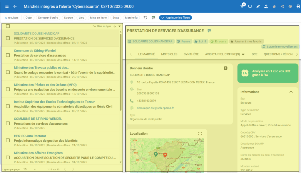 - Une « Vue Marchés », spécialement conçue pour suivre vos appels d’offres.