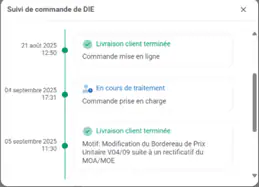 • Après la commande d’un DCI (ex-DIE), vous avez accès à plusieurs informations, permettant de suivre son évolution.