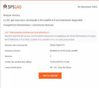 « Annulation de la commande de DCI (ex-DIE) sur Spigao : objet du marché  »
