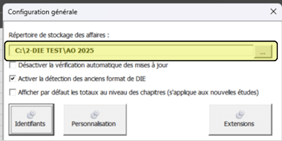 - La partie haute de la fenêtre permet de préciser le répertoire de stockage par défaut des affaires.