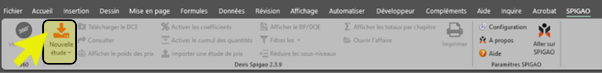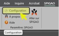 - Cliquez sur SPIGAO – Configuration, depuis le menu Excel (pour les logiciels métiers, reportez-vous à la notice ad’hoc).