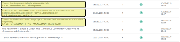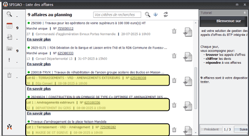- Puis, veuillez cliquer sur « Depuis la liste d’affaires », pour que la fenêtre présente une liste d’affaires, classées par ordre croissant de date limite de réception des offres.