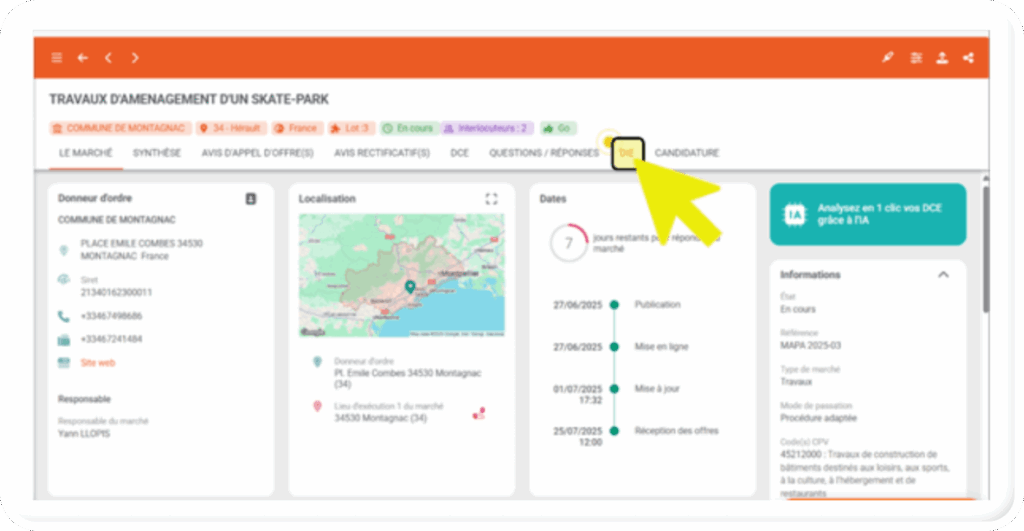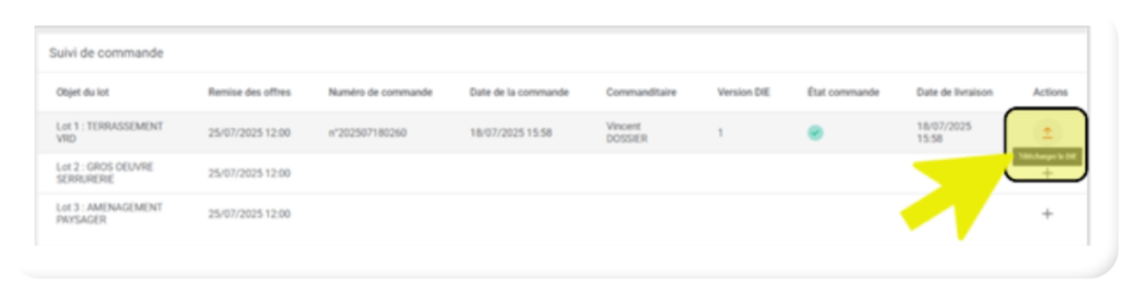 Télécharger le DCI (ex-DIE), depuis l’onglet « DCI (ex-DIE) » du marché