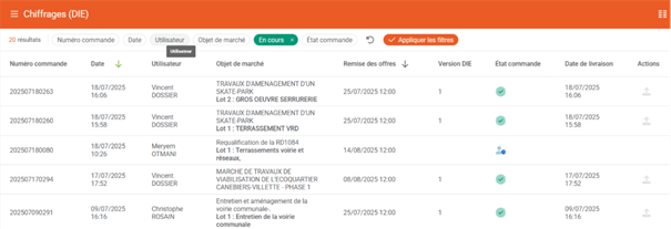 - Etat de la commande (en cours de traitement, annulée ou terminée).