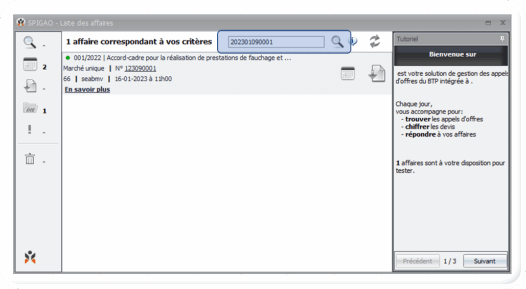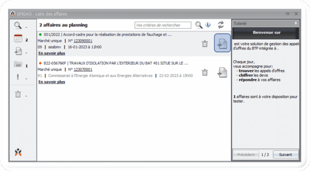 - Via la liste d’affaires, depuis le menu « SPIGAO » sur Excel.